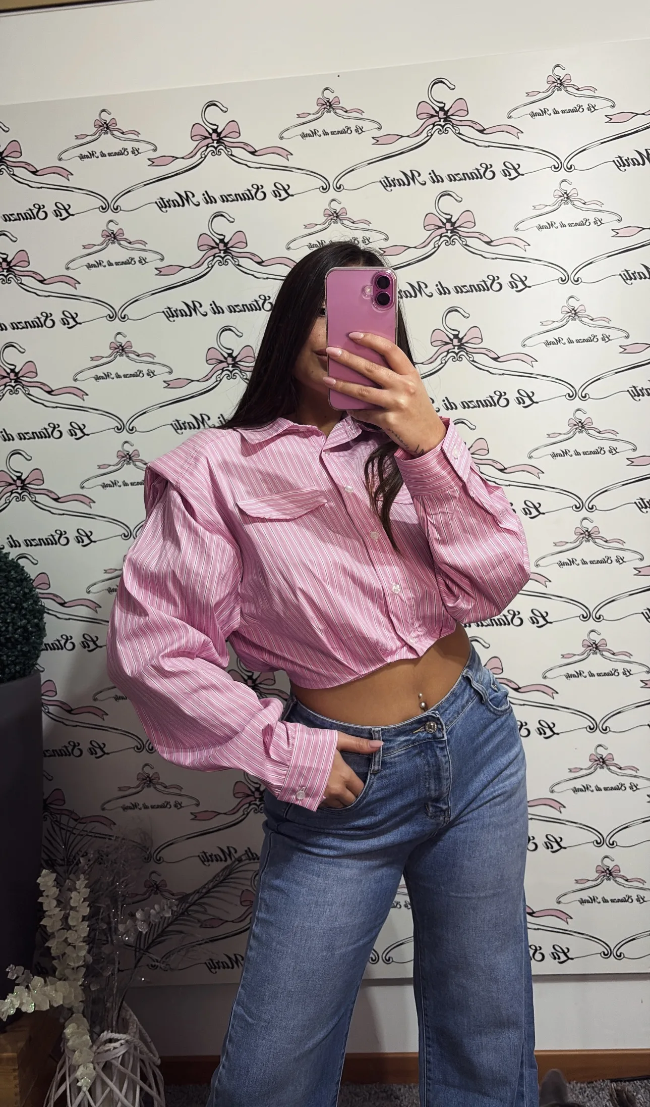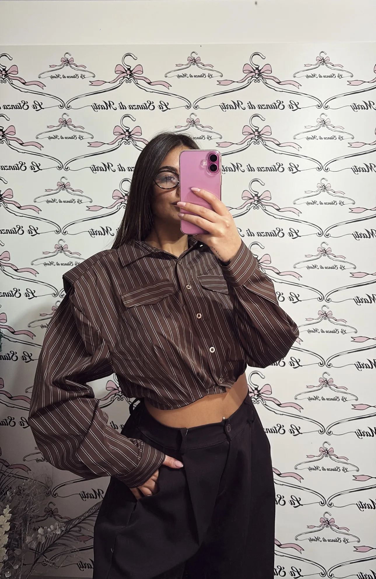 Camicia crop femminile dal taglio moderno e leggero, perfetta per look casual-chic. Con spallina strutturata