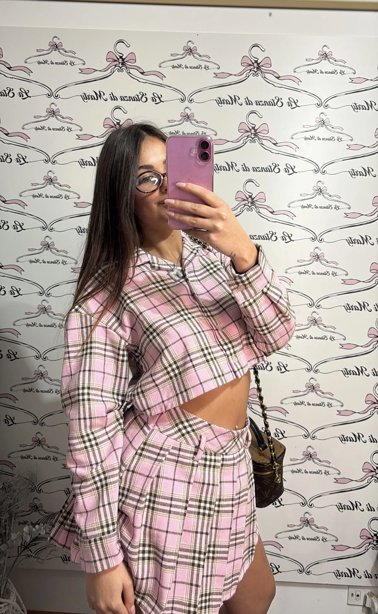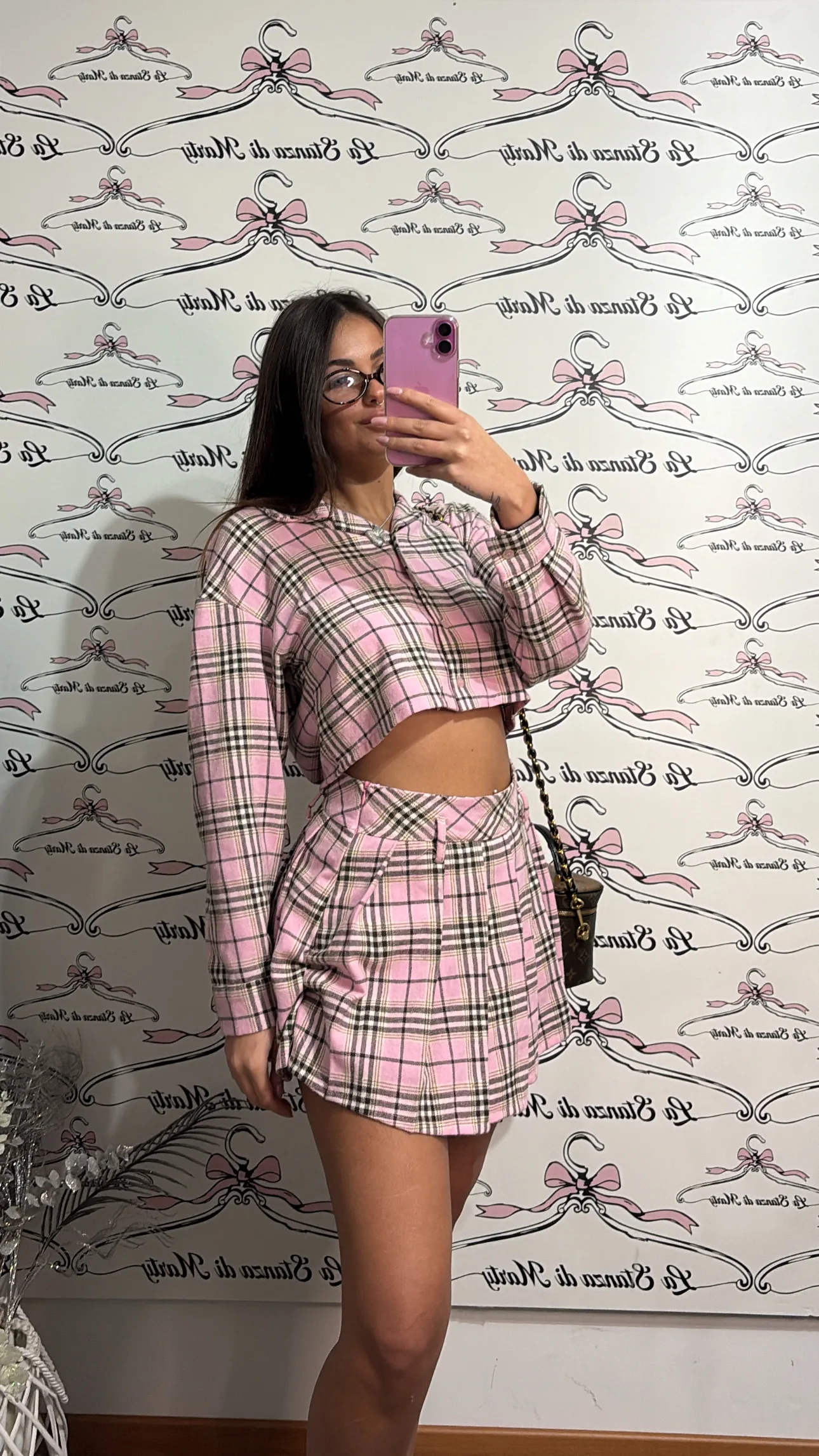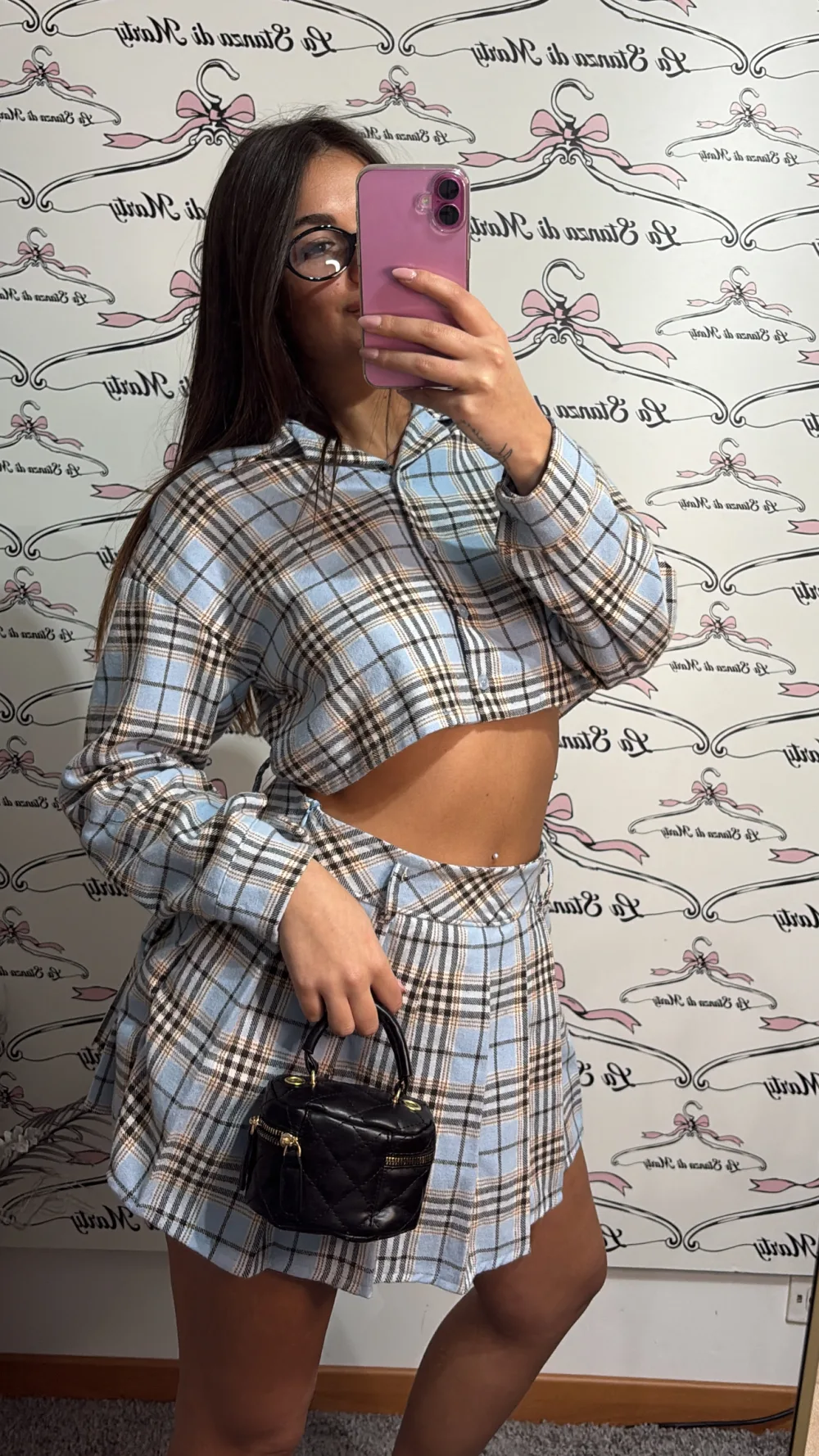 Completo con camicetta e gonna scozzese, dallo stile femminile e di tendenza. Perfetto per un look chic da giorno, ispirato al classico stile college