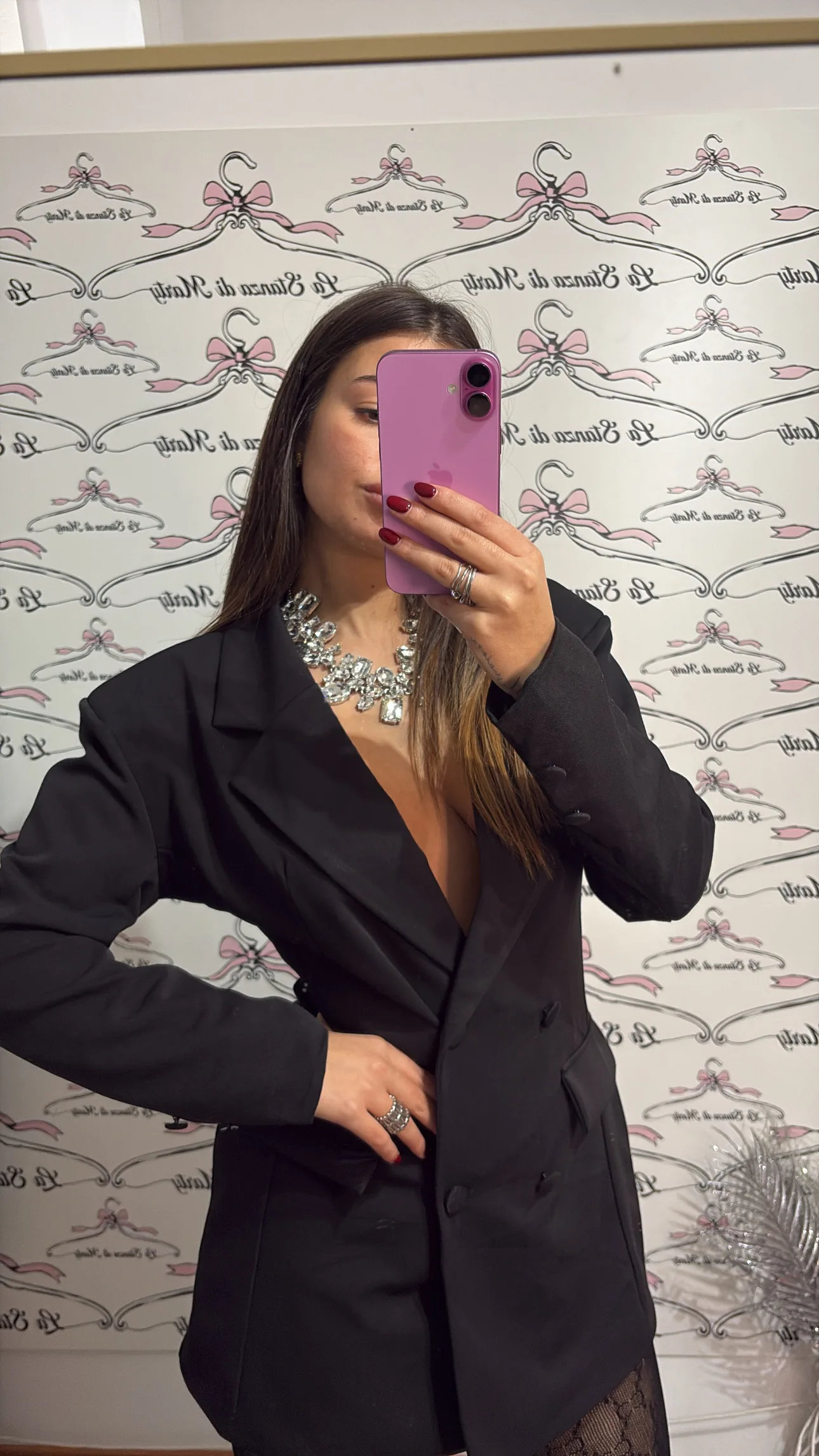 Semplice, sofisticata eversatile.Il nostro blazer nero a vestito: perfetto da giorno o da sera