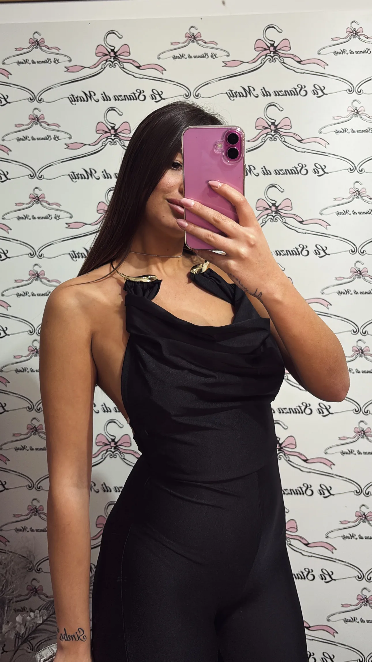 Gamba zampa, schiena scoperta e particolare al collo: il capo perfetto per le tue serate.