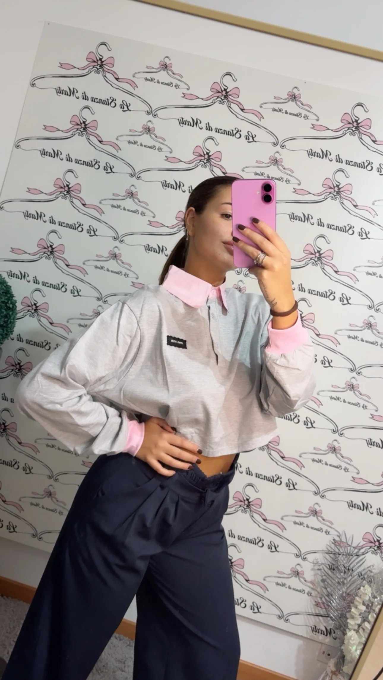 Il contrasto tra il grigio sobrio e il rosa delicato dona un tocco di personalità, rendendo questa polo ideale sia per look casual che per outfit più curati.