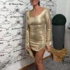 Vestito elasticizzato ricoperto di paillettes con schiena scoperta e scollo a V.